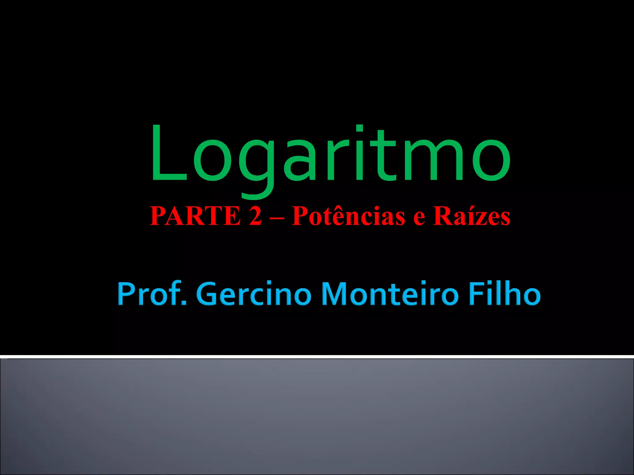 1) O documento discute a história e propriedades de logaritmos, potências e raízes.