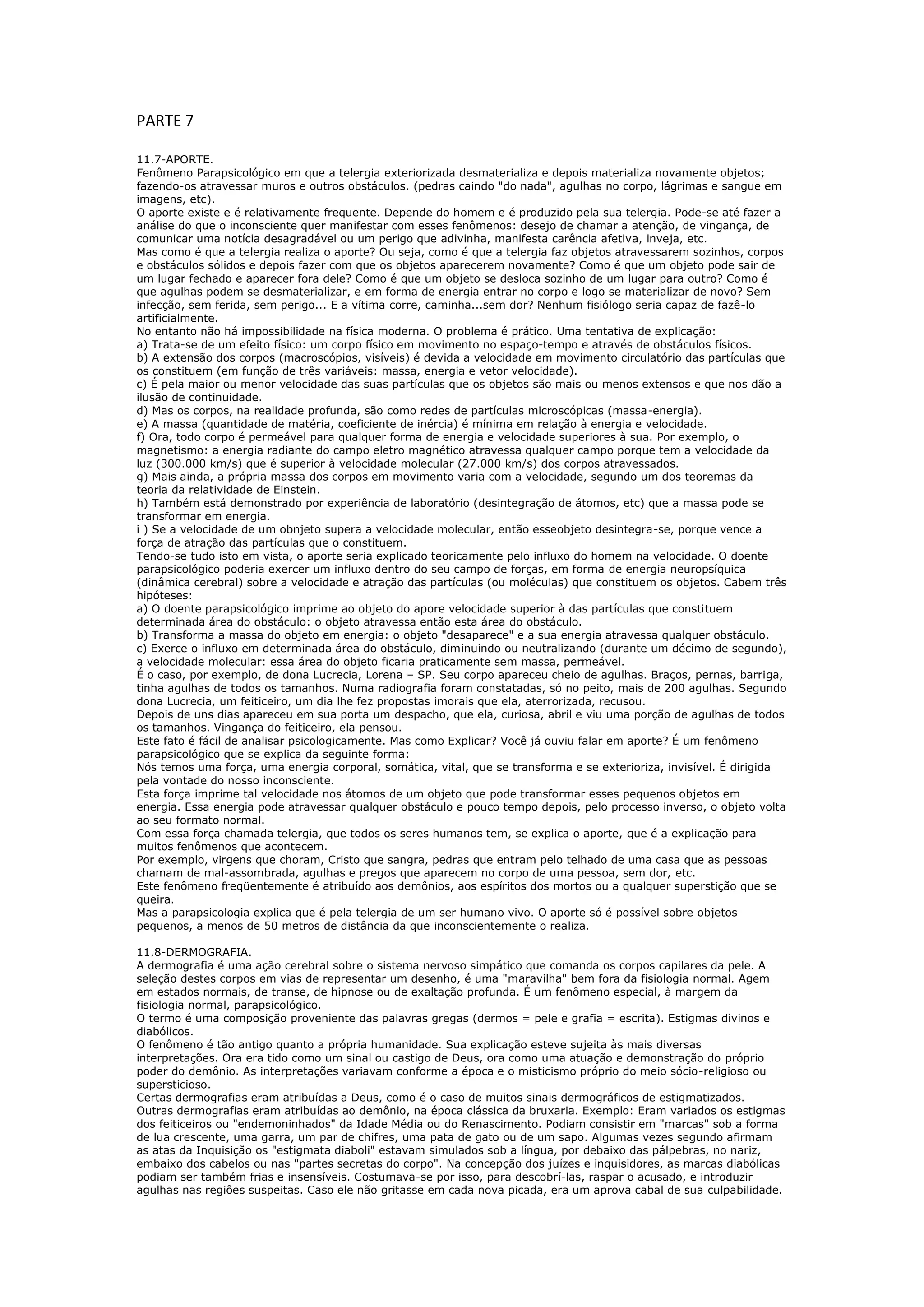 1) Aporte, onde objetos podem atravessar obstáculos através da telergia humana, explicando incidentes como agulhas no corpo sem ferimentos.