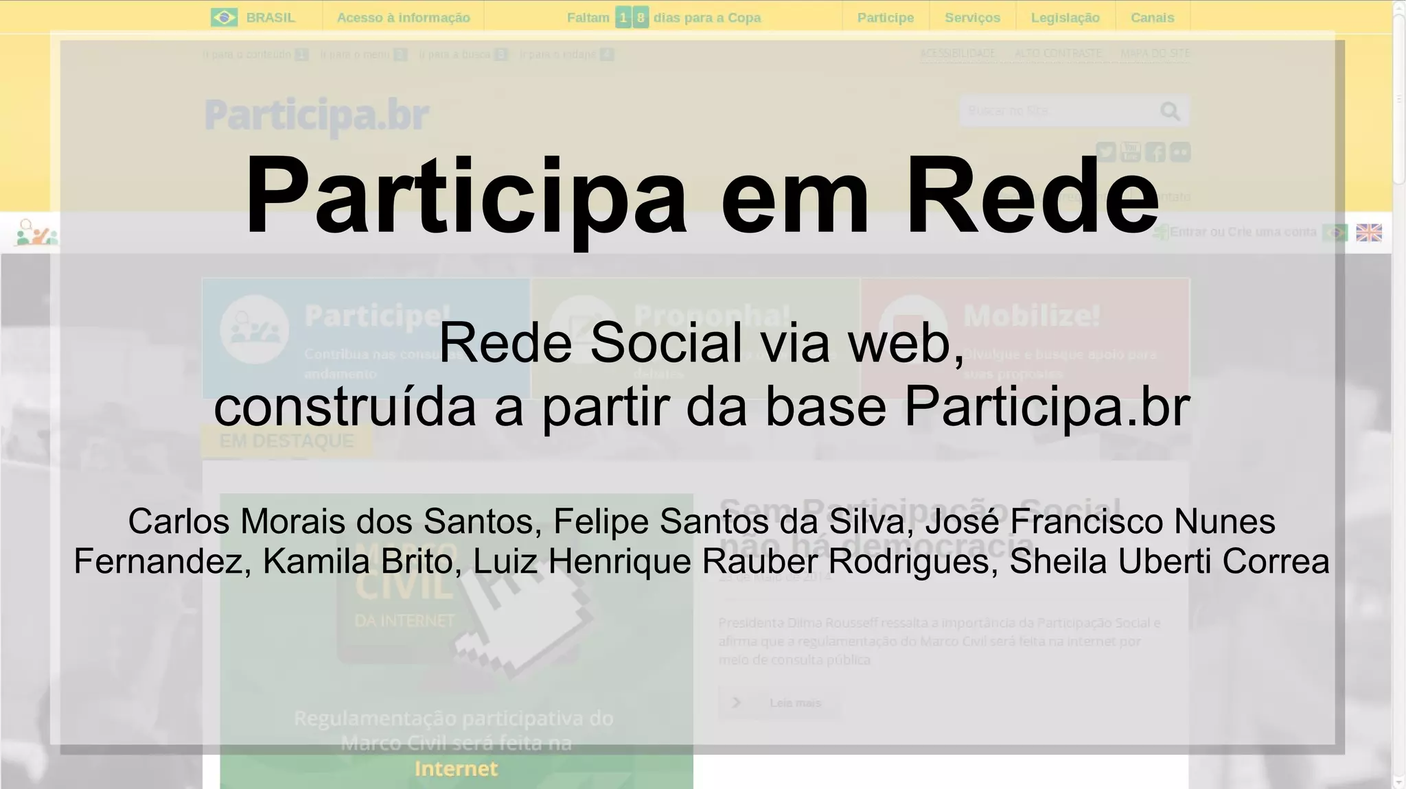 A rede social Participa em Rede foi construída para conectar indivíduos e organizações da sociedade civil (OSCs) através da plataforma Participa.br. A rede permite que as OSCs criem grupos online para discutir causas e organizar iniciativas, enquanto os indivíduos podem se conectar às OSCs e uns aos outros com base em interesses comuns. A rede é projetada para ser acessível a todos e sustentável ao depender da participação ativa dos usuários.