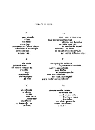 O documento explora a complexidade da comunicação, especialmente na música contemporânea, visando questionar a natureza dos sons e sua capacidade de comunicação. Ele faz referências a diversas figuras e conceitos relacionados à música experimental e à intersecção entre arte e vida, destacando como a percepção musical está intimamente ligada à experiência individual. Além disso, menciona a necessidade de uma audição crítica frente à desinformação e a superficialidade da cultura popular.