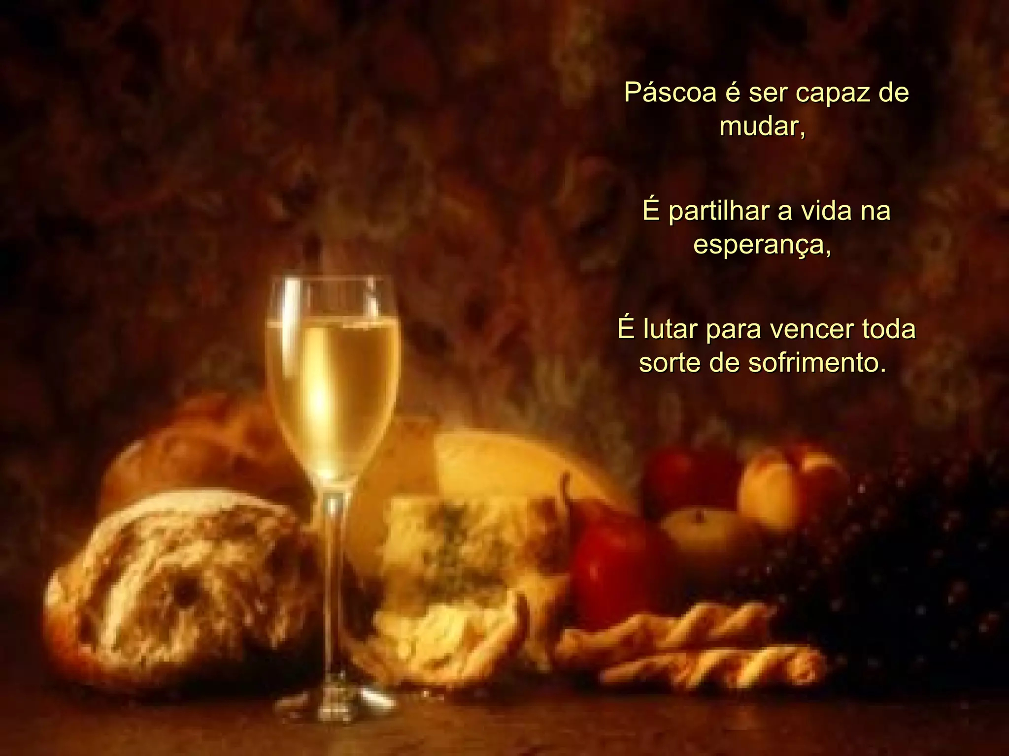 Páscoa é sercapaz de mudar, É partilhar a vida na esperança, É lutar para vencer toda sorte de sofrimento.
