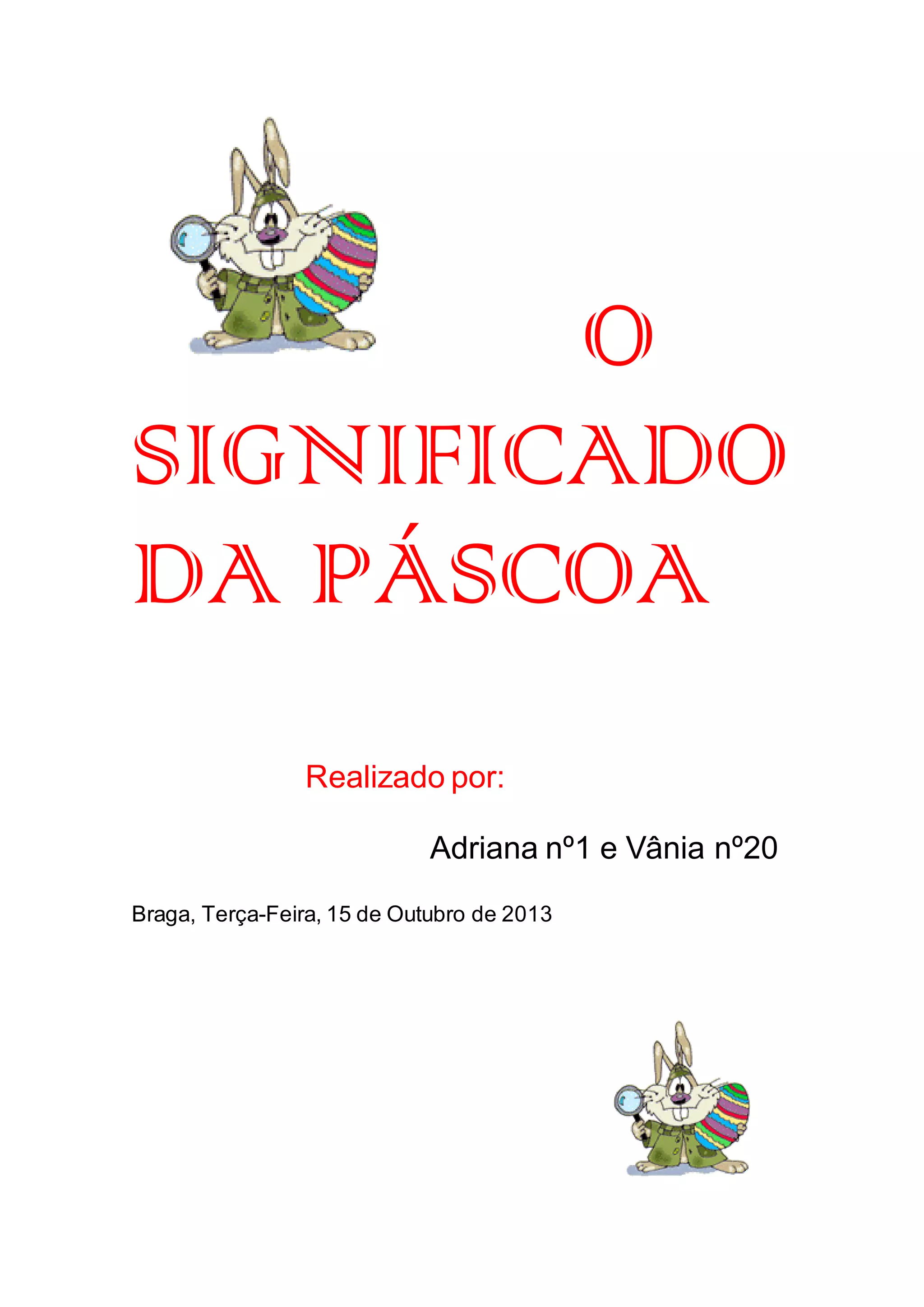 O documento descreve a origem e significado da Páscoa cristã e seus símbolos como ovos e coelhos. Explica que a Páscoa celebra a ressurreição de Jesus Cristo e que sua data varia anualmente dependendo da lua cheia após o equinócio de primavera. Também discute a origem do chocolate e do coelho como símbolos da Páscoa e fornece as datas da Páscoa entre 2000-2010.
