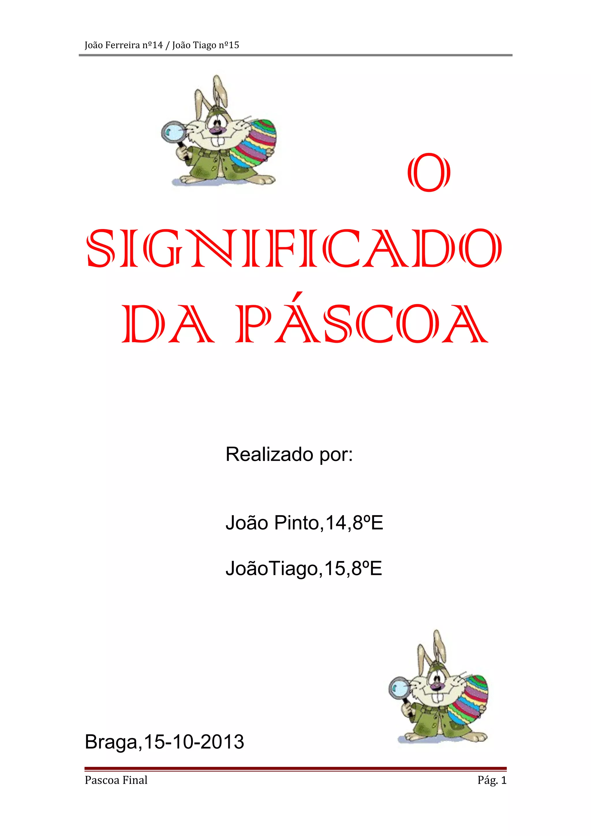 O documento explica o significado e origem da Páscoa cristã, incluindo a ressurreição de Jesus, e tradições associadas como ovos, coelhos e chocolate. Também discute porque a data da Páscoa muda a cada ano dependendo da lua cheia após o equinócio da primavera.