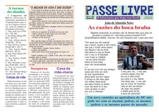 O documento apresenta três histórias curtas: 1) Um padre dá um sermão com interrupção de um papagaio; 2) Um japonês quer dar um nome brasileiro ao seu filho e recebe uma sugestão engraçada; 3) Um caipira tenta fazer o sinal da cruz durante a confissão, mas não consegue "espaiar" os dedos corretamente.