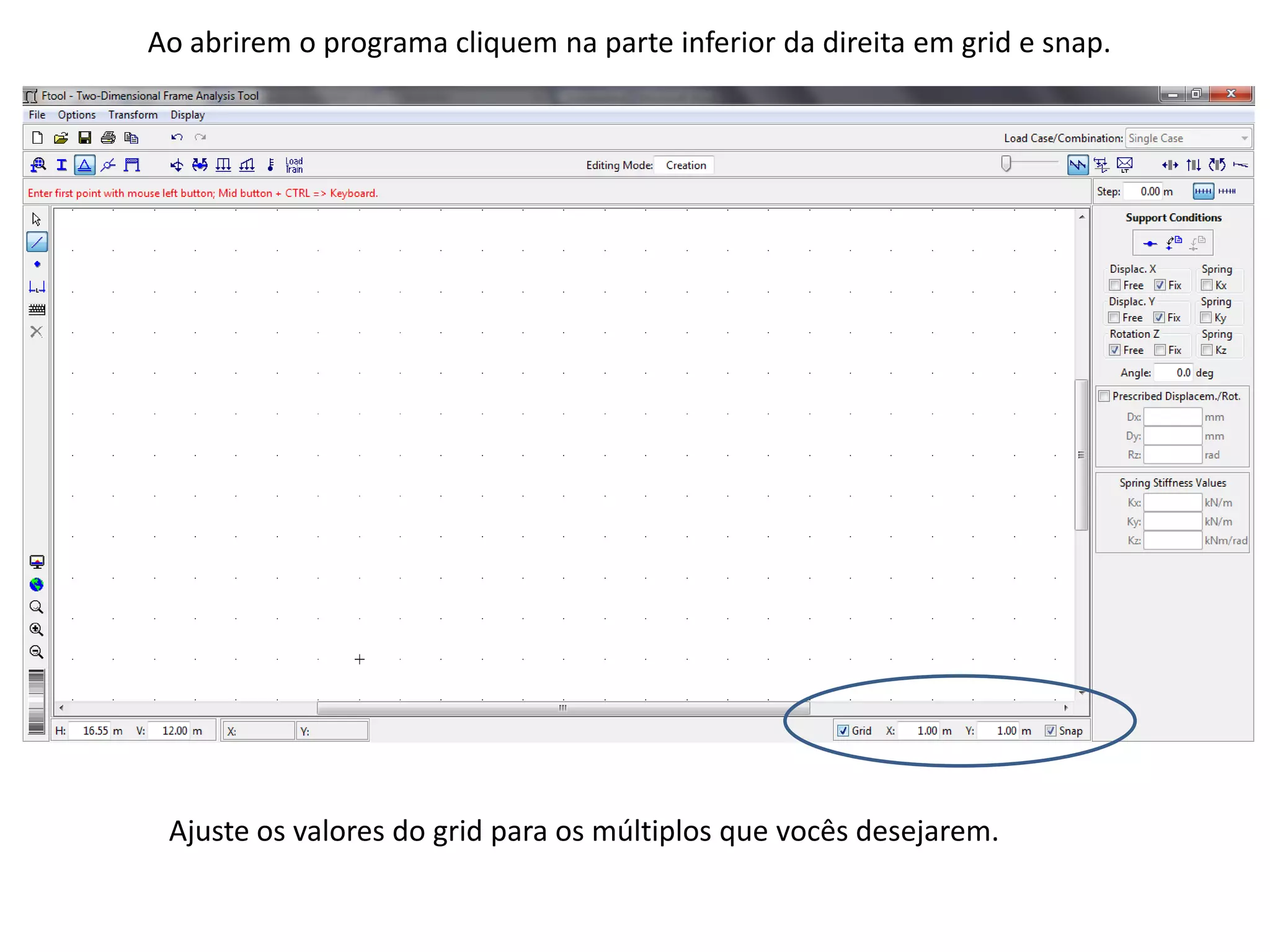 O documento fornece instruções passo-a-passo para modelar e analisar uma treliça de ponte usando um software de elementos finitos. Inclui etapas como desenhar a estrutura, definir apoios, materiais, seções transversais, carregamentos e visualizar resultados de esforços. O objetivo é identificar quais barras precisam de reforço para suportar os carregamentos aplicados.