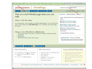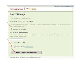 Este documento fornece instruções passo a passo para criar e editar uma página wiki sem senha. Ele explica como escolher um nome, escrever conteúdo, salvar alterações, inserir imagens e criar links entre páginas.