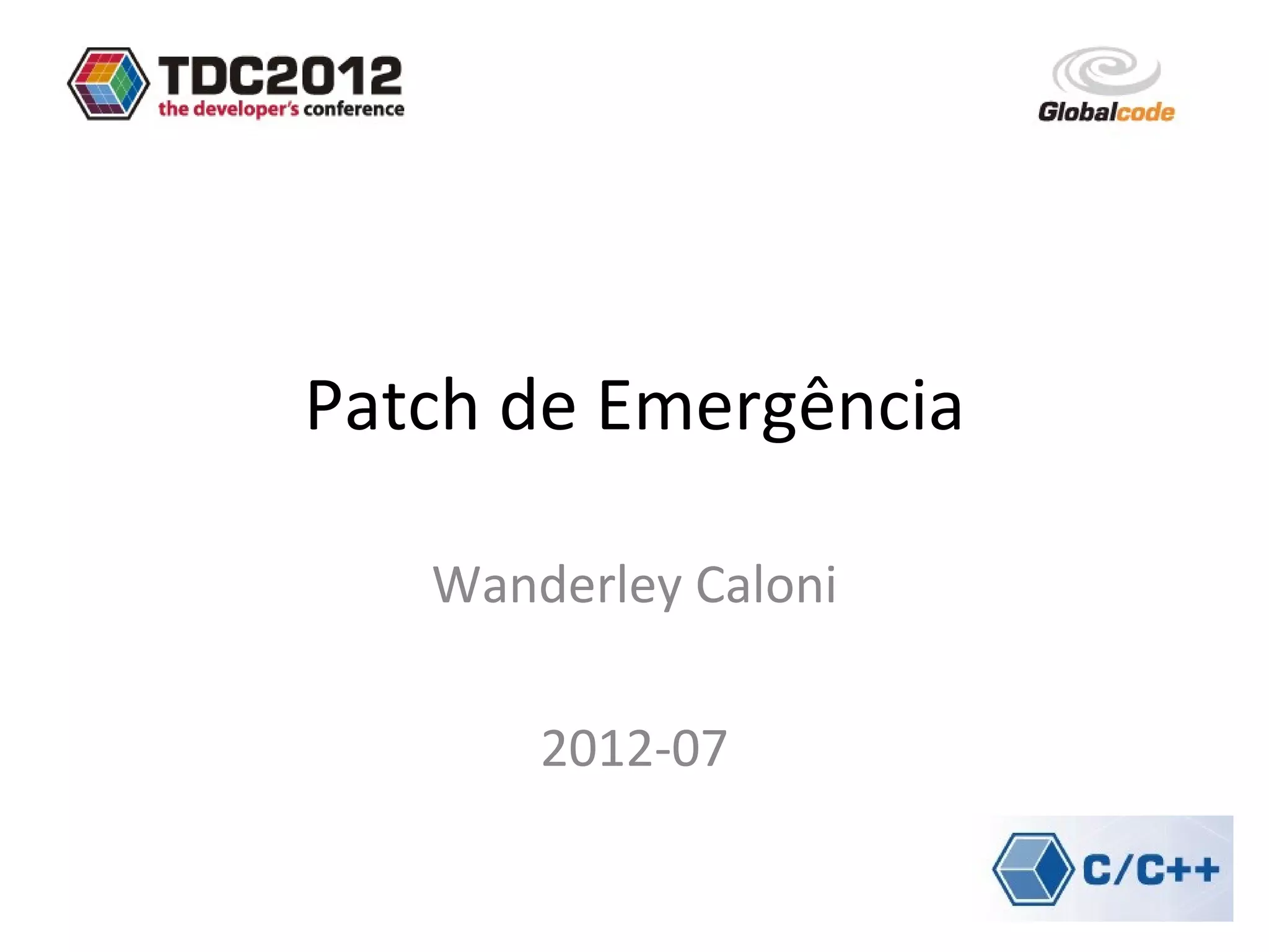 O documento descreve técnicas de patch de emergência em software, incluindo modificações de código em tempo de execução e carregamento dinâmico de bibliotecas para contornar problemas. É discutido o uso de ferramentas como WinDbg para depuração e correção de bugs sem reinicialização. Técnicas avançadas como threads remotas também são apresentadas.