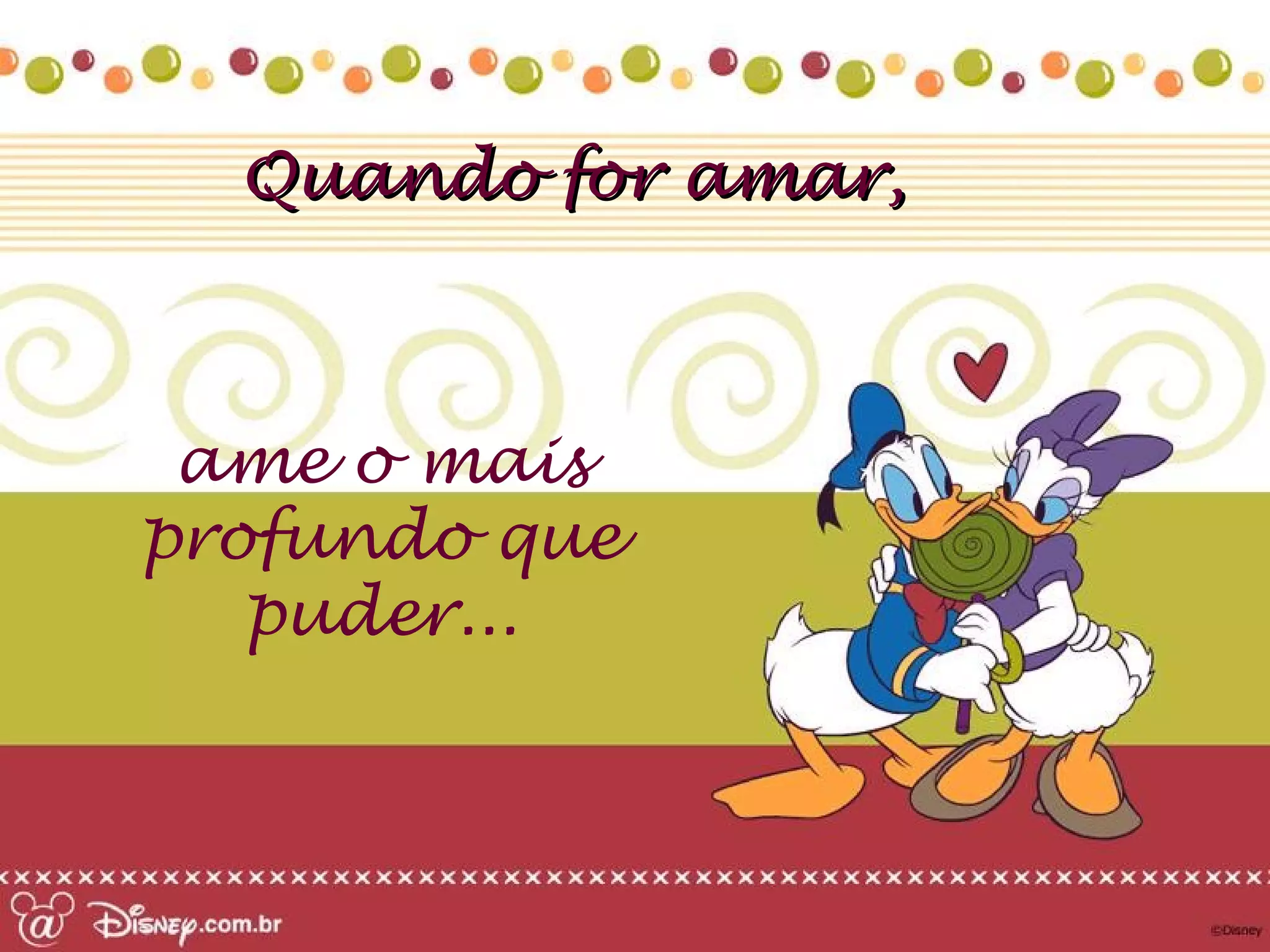O documento fornece conselhos sobre como amar profundamente, falar somente o necessário, e sorrir com os olhos. Também encoraja o leitor a não desistir quando pensar em desistir, declarar sentimentos sem medo, e sonhar alto.