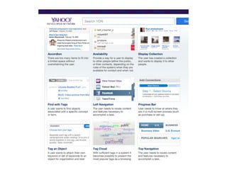 Este documento discute padrões de interação e qualidades de uso. Apresenta padrões de projeto utilizados em engenharia de software e repositórios de padrões. Também discute dark patterns que usam técnicas de padrões para objetivos questionáveis. Por fim, introduz o conceito de qualidades de uso para descrever propriedades da experiência do usuário com artefatos digitais.