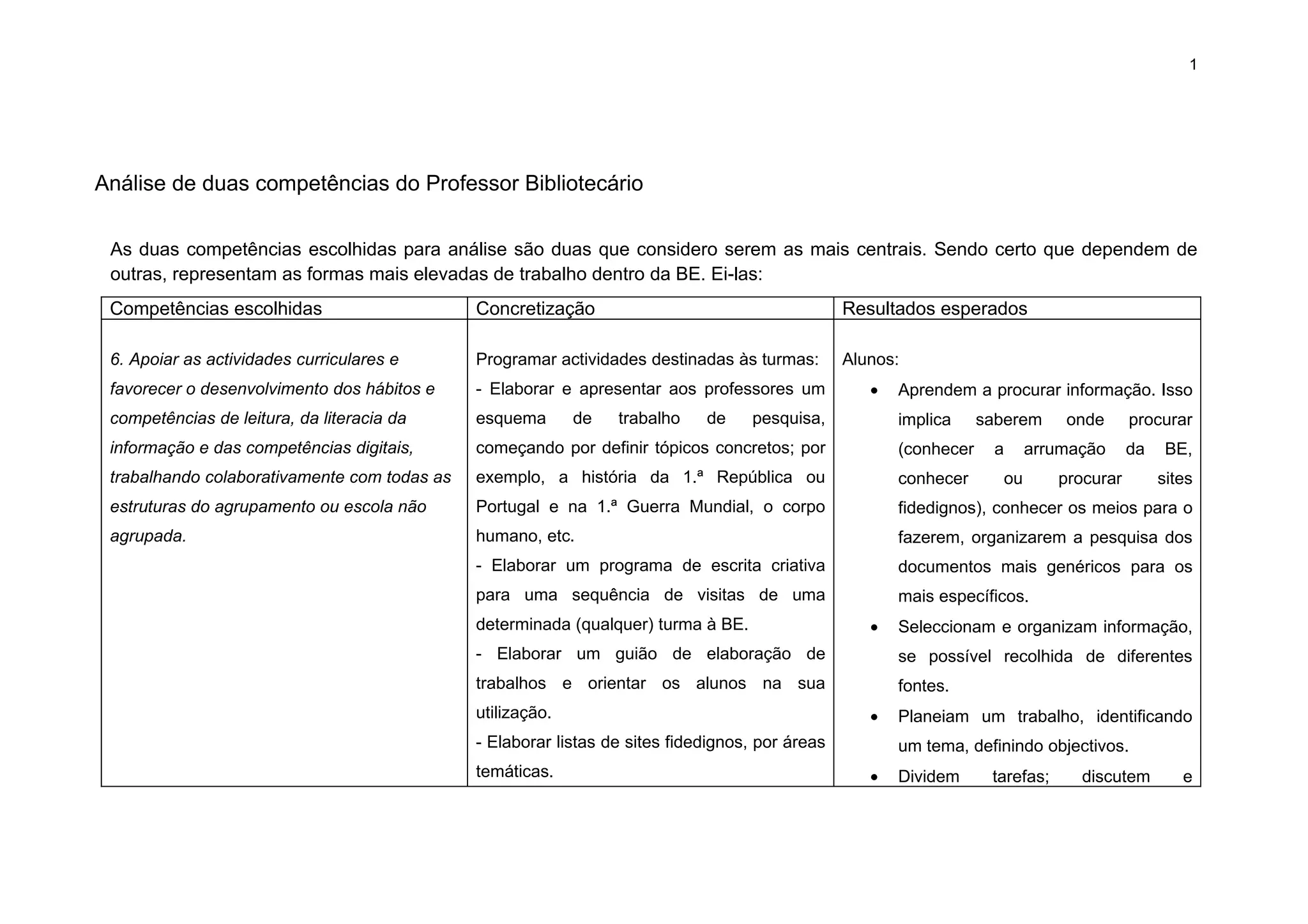 Este documento analisa duas competências centrais de um professor bibliotecário: