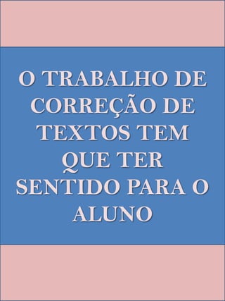 O documento discute o uso de pautas de correção de textos para fornecer feedback a alunos de forma estruturada e significativa. Ele apresenta diferentes fases do processo, começando com legendas icônicas simples e evoluindo para legendas simbólicas mais complexas, até chegar a uma pauta escrita avançada. O objetivo é que a correção tenha sentido para o aluno e o ajude a melhorar.
