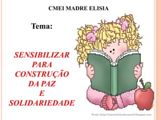 O documento apresenta várias citações de filósofos, pensadores e líderes que enfatizam a importância da paz e da solidariedade. O tema central é sensibilizar as pessoas para a construção da paz e da solidariedade por meio do entendimento mútuo e da não-violência.