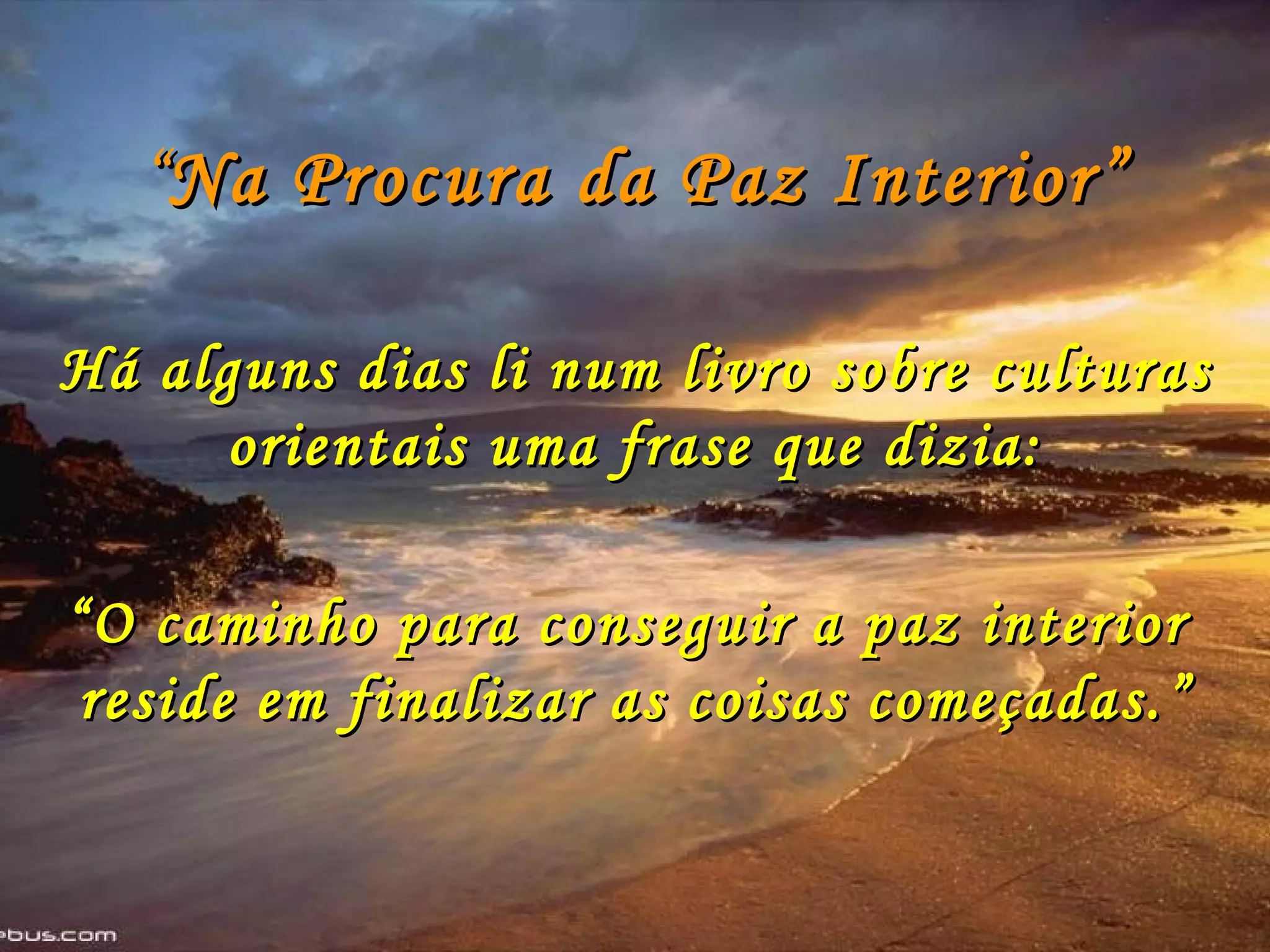 O autor lê que a paz interior vem de finalizar as coisas começadas, e reflete sobre isso. Ele nota várias coisas inacabadas em sua vida e decide terminá-las, incluindo comida e bebida. Ao finalizar tudo, sente-se bem e em paz.