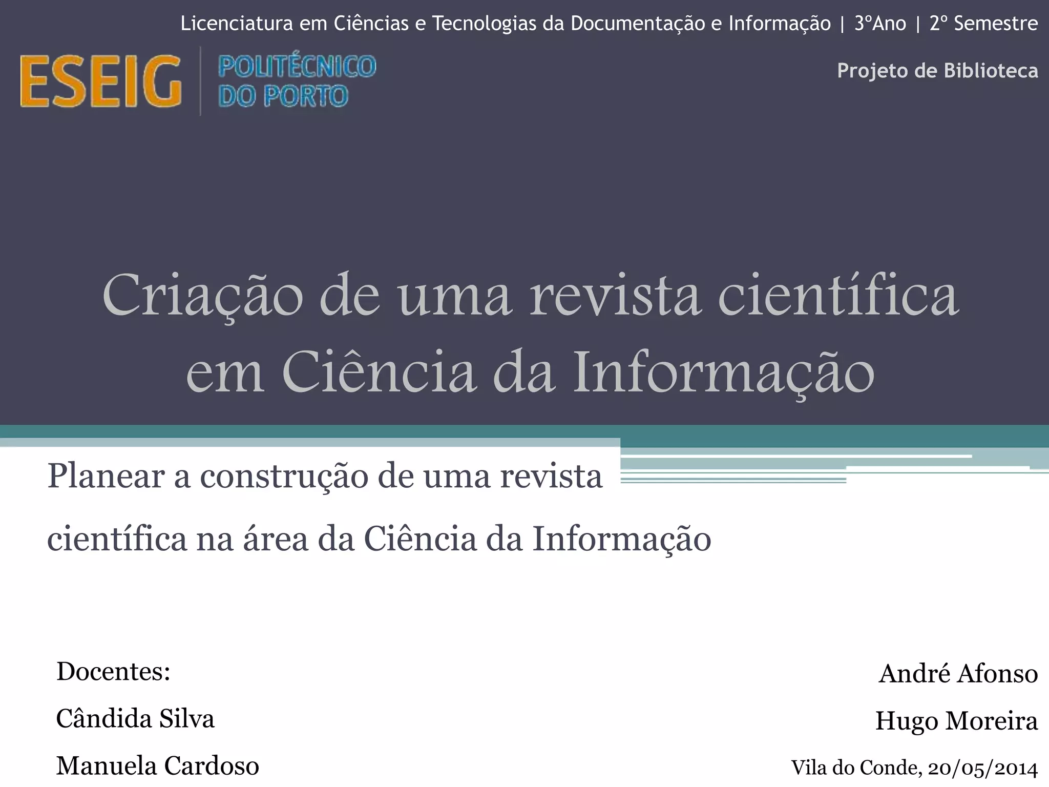 - O documento discute a criação de uma revista científica em Ciência da Informação usando o software de código aberto Open Journal Systems (OJS).