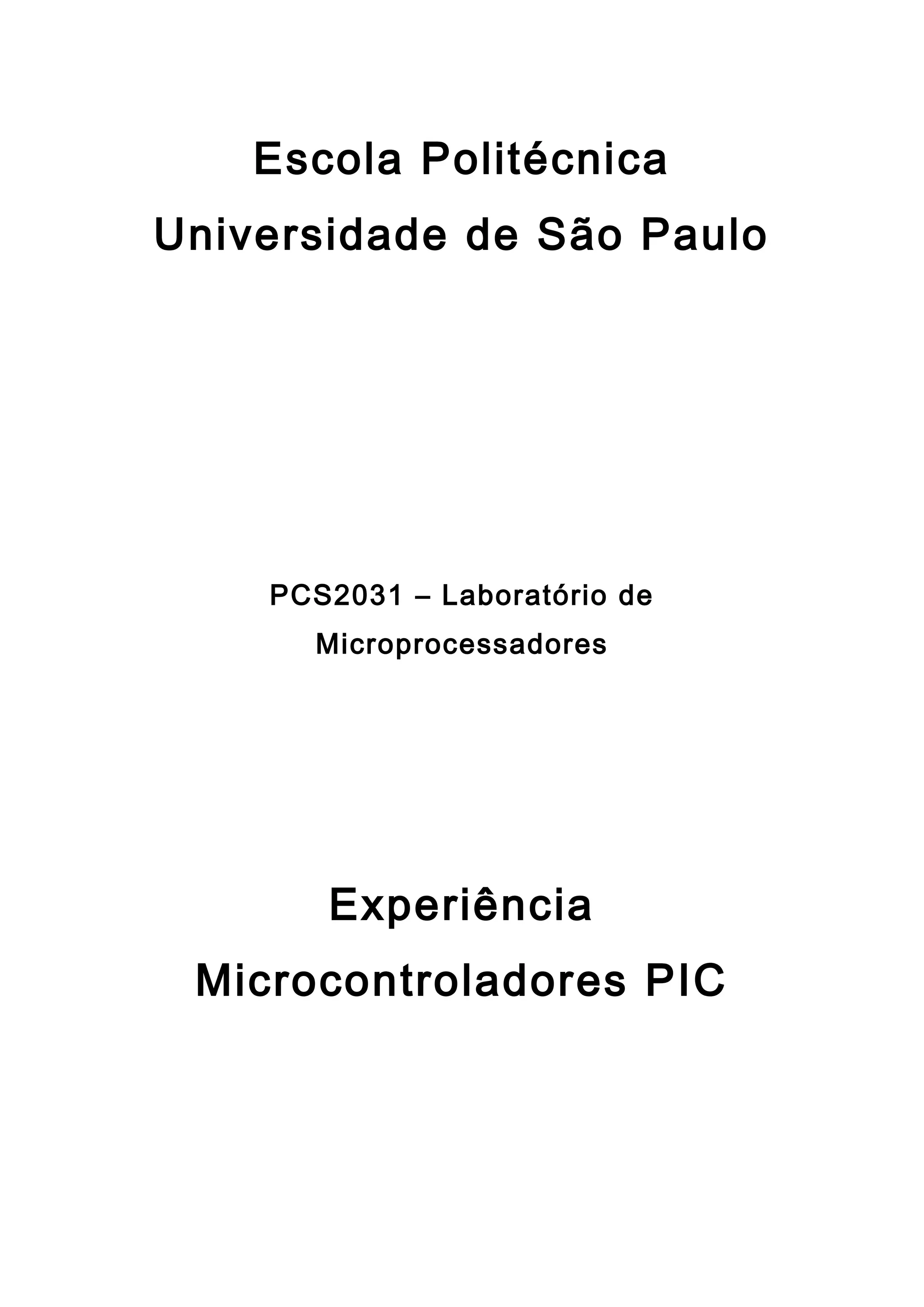 Este documento descreve uma experiência com microcontroladores PIC. Ele fornece uma introdução à família PIC, sua arquitetura RISC e características. Também discute a família PIC16F84A, incluindo sua memória, registradores e periféricos. O objetivo da experiência é gerar uma onda quadrada usando um PIC.