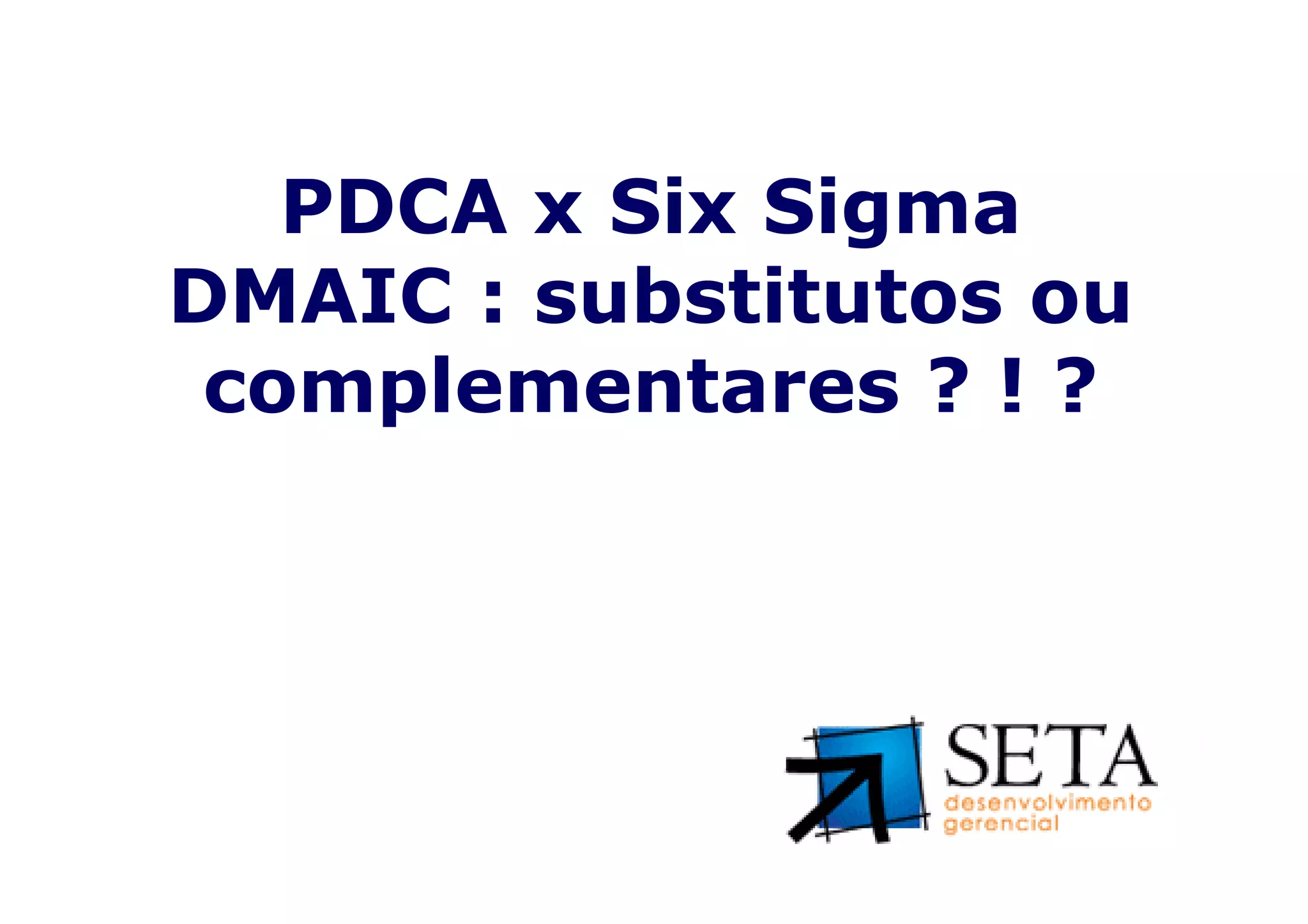 1) O documento compara o ciclo PDCA de melhoria contínua com a metodologia Six Sigma DMAIC.