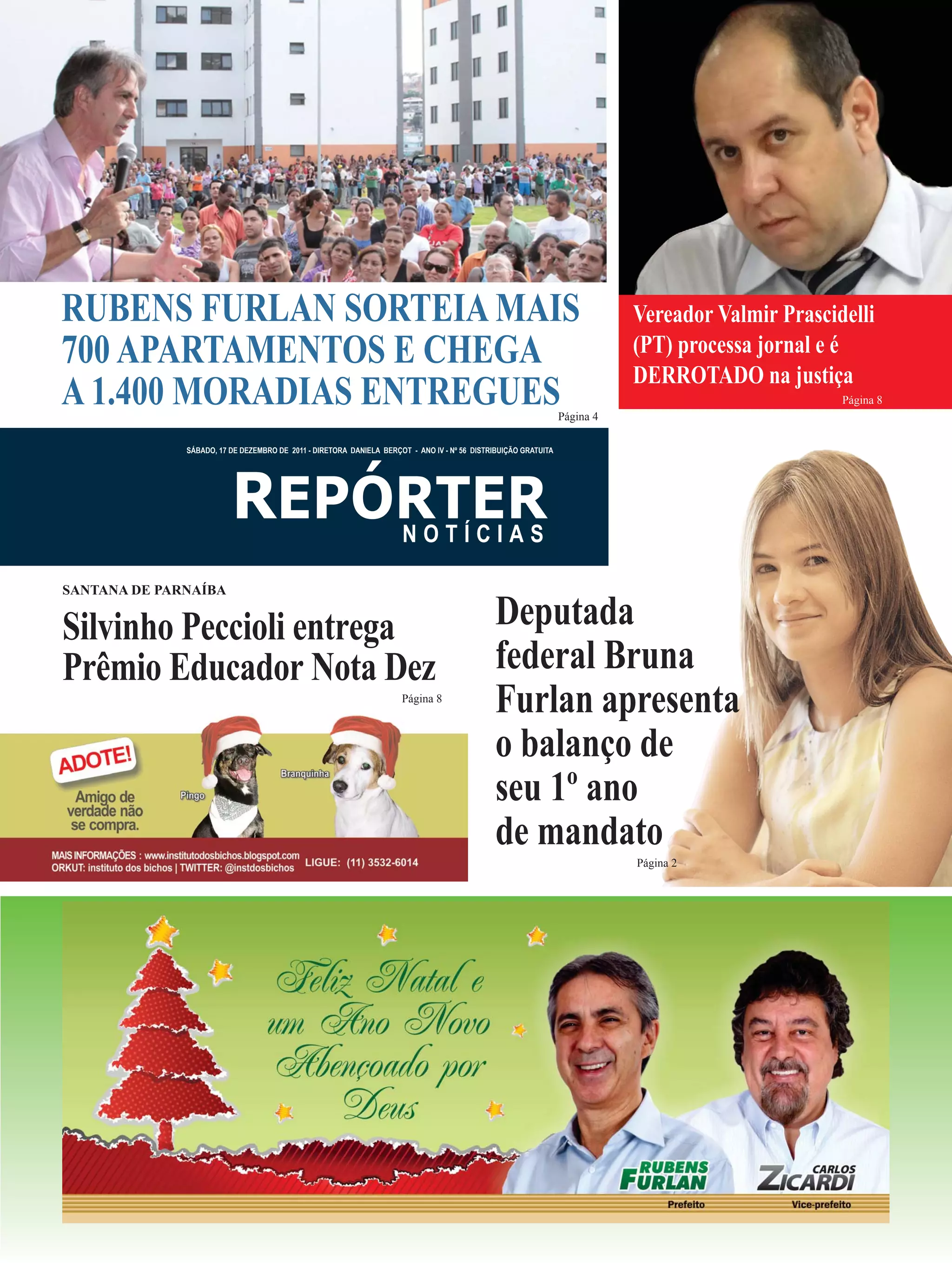 1) O prefeito Rubens Furlan irá sortear 700 apartamentos no Conjunto Habitacional da estrada do Itaqui, chegando a 1.400 moradias entregues desde 2005.