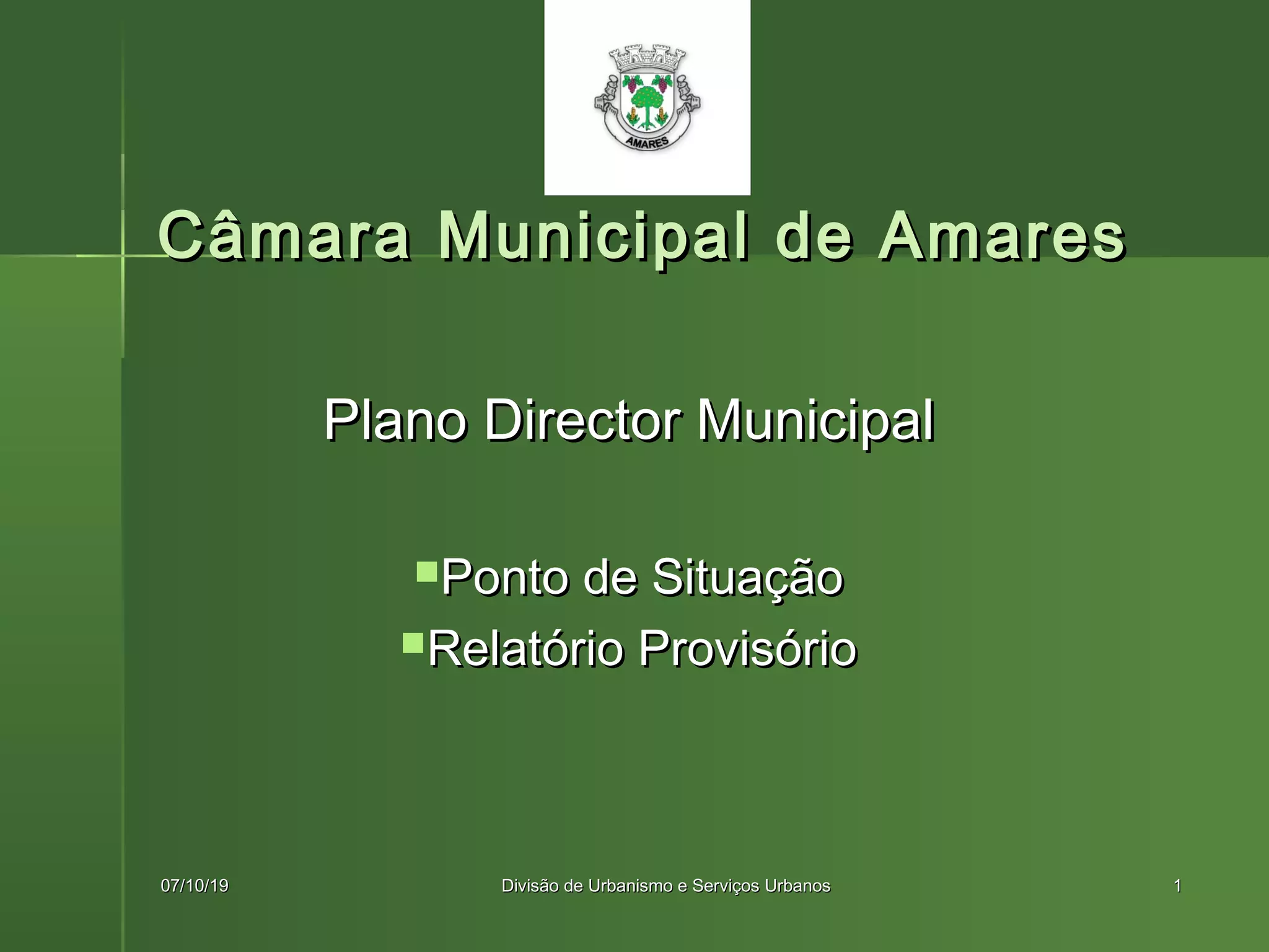 O documento descreve o processo de revisão do Plano Diretor Municipal de Amares, Portugal. Inclui uma análise da primeira geração de PDMs e os principais objetivos da revisão, como ajustar o PDM à legislação atual e promover o desenvolvimento sustentável do município. Também detalha os trabalhos de levantamento de dados e consulta pública realizados para a revisão, incluindo ruído, uso do solo e infraestrutura educacional.