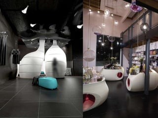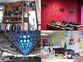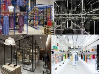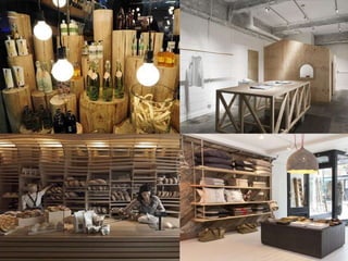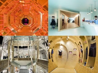 A geometria é uma macrotendência no varejo, destacando-se pela repetição de formas geométricas clássicas e novas interpretações. Formas hexagonais em mosaico ("colmeias") são visuais atraentes e úteis. Misturas de formas simétricas e assimétricas também são tendências, conferindo contraste e movimento. Materiais como madeira, papelão e tijolos em tons claros dão um ar artesanal aos pontos de venda.