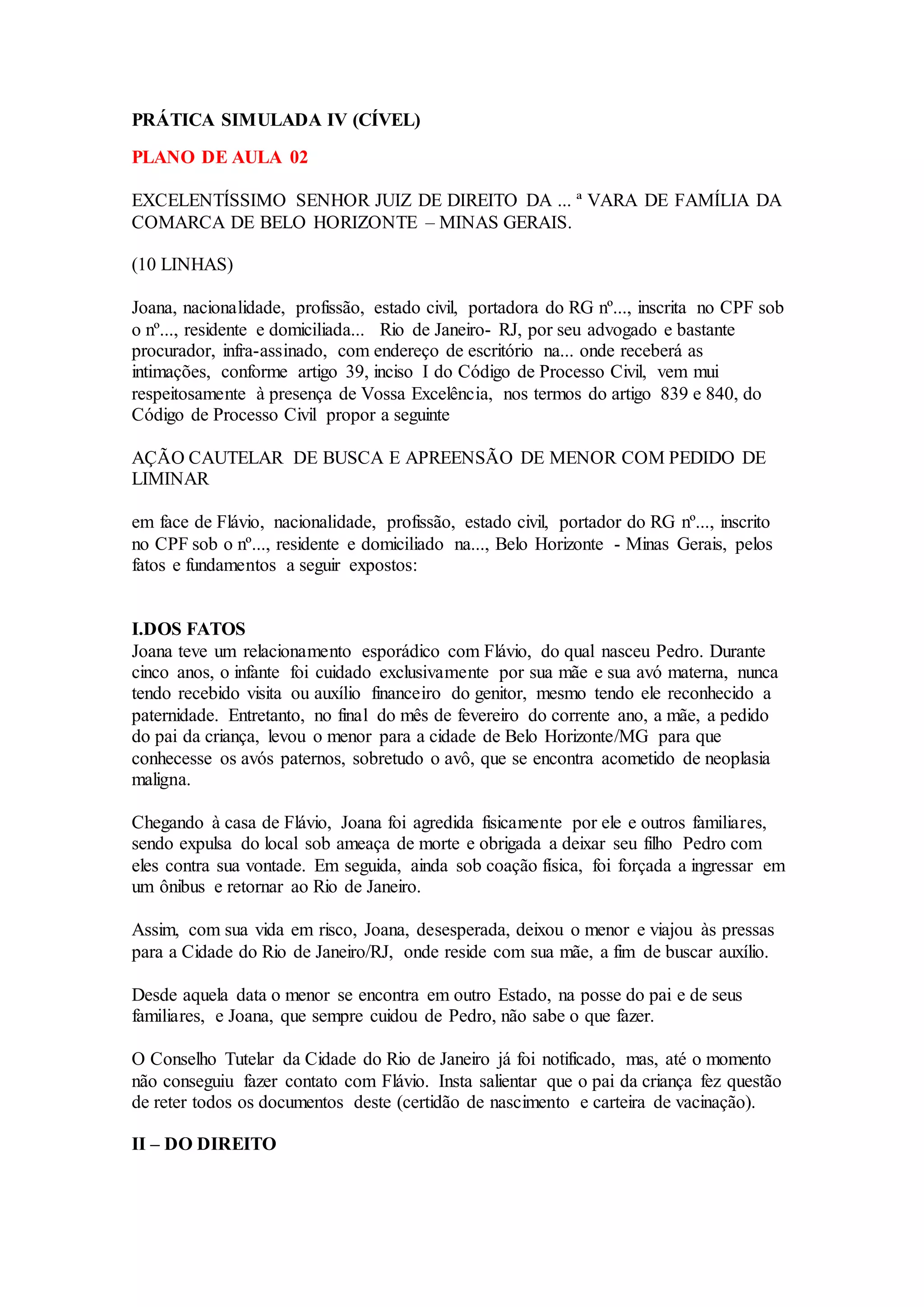 Joana move ação cautelar de busca e apreensão de seu filho Pedro contra Flávio. Joana afirma que levou Pedro para Belo Horizonte a pedido de Flávio, mas foi agredida por ele e familiares, sendo forçada a deixar Pedro. Joana pede liminar para retornar Pedro aos seus cuidados. Indústria de Doces move ação de execução de título extrajudicial contra Sonhos Encantados por dívida de duplicata vencida e não paga.