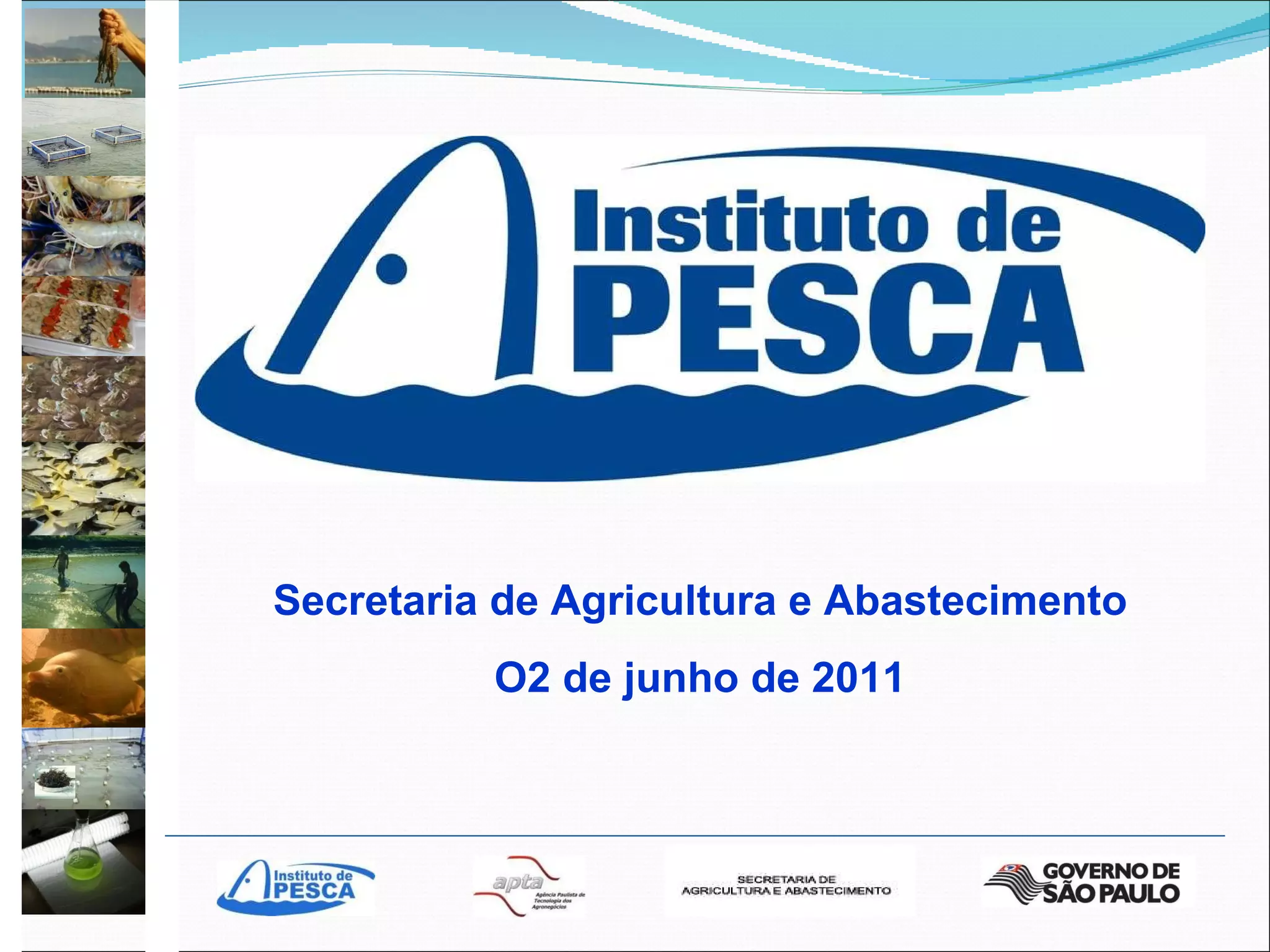 1. O documento descreve a missão do Instituto de Pesca de gerar e difundir conhecimentos científicos e tecnológicos para os agronegócios da pesca e aquicultura.