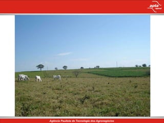 O documento discute a integração da agricultura e pecuária como alternativa para recuperar pastagens no estado de São Paulo. Ele apresenta dados sobre a densidade de bovinos, uso da terra, produção agrícola e pecuária. Também descreve um sistema de integração lavoura-pecuária testado que inclui culturas de milho e pastagens para recria de bovinos de corte.
