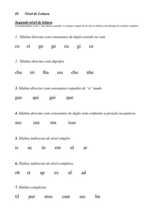 (correspondente a um 2º ano básico- a criança é capaz de ler até sílabas com grupos consonantais e ditongos de carácter
