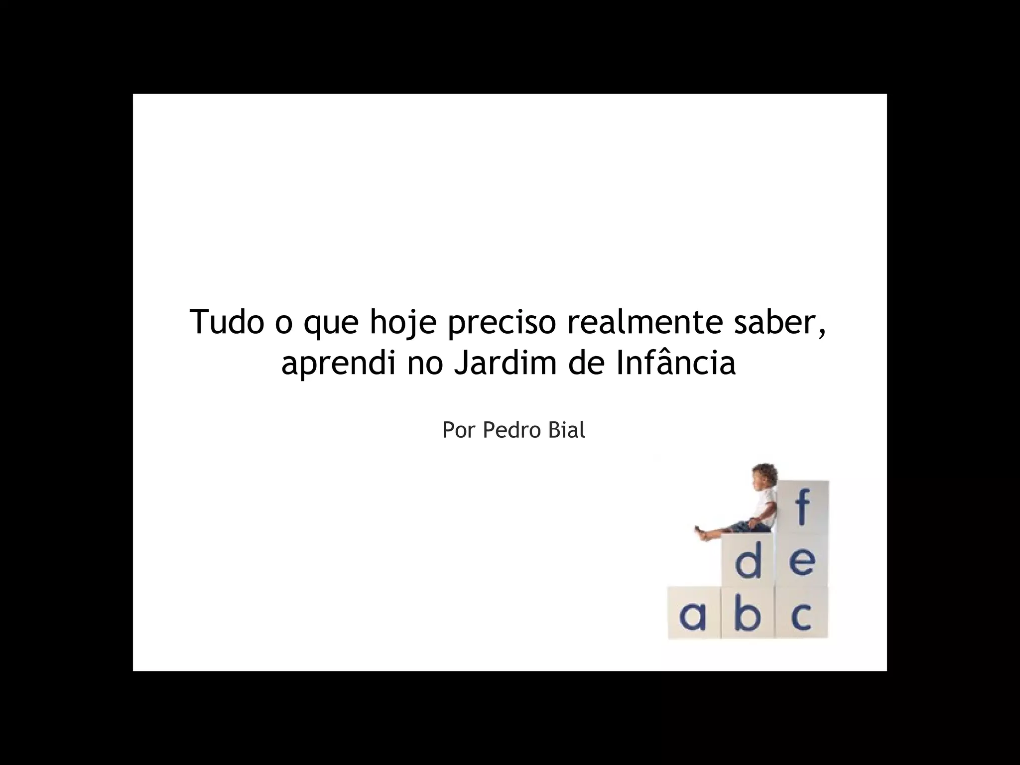 1. O autor aprendeu as lições mais importantes da vida no jardim de infância, não em cursos avançados.