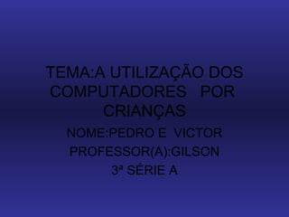 O documento discute o uso seguro de computadores por crianças. Ele enfatiza que os responsáveis devem acompanhar as crianças em atividades on-line e que sites educativos são mais apropriados do que sites violentos. Também observa que computadores podem ser usados para educação, não apenas jogos, e que crianças pesquisam conteúdo inapropriado on-line.