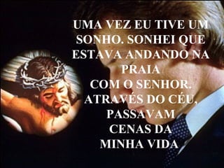 No sonho, o narrador anda na praia com o Senhor e vê cenas de sua vida, com dois pares de pegadas na areia, exceto nos momentos mais difíceis, quando via apenas um par. Ao questionar o Senhor, ele explica que nos momentos de maior sofrimento carregou o narrador nos braços.