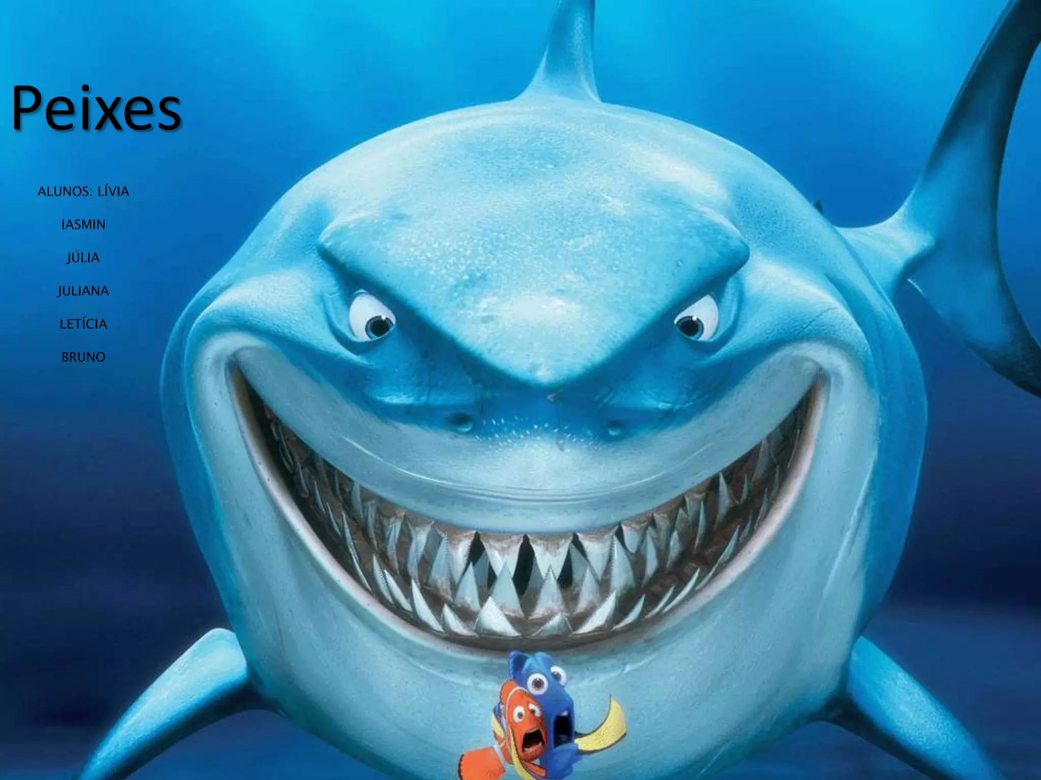 O documento apresenta as principais características de três grupos de peixes: ágnatos, condrictes e osteíctes. Detalha suas classificações científicas, anatomias e adaptações para a vida na água. Apresenta também curiosidades sobre alguns peixes, como a troca de sexo e espécies venenosas ou de grande porte.