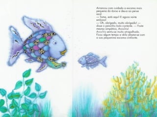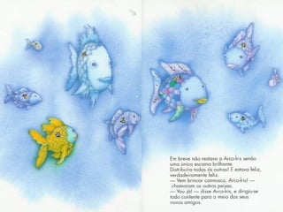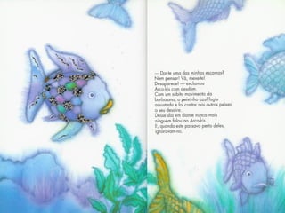 O peixe Arco-Íris era o mais belo dos oceanos devido às suas escamas coloridas como um arco-íris. Embora os outros peixes admiravam suas escamas, Arco-Íris era arrogante e só se preocupava com a beleza de suas escamas. Octopus disse a Arco-Íris que ele seria mais feliz se oferecesse suas escamas aos outros, mas Arco-Íris se recusou a abrir mão de sua beleza.