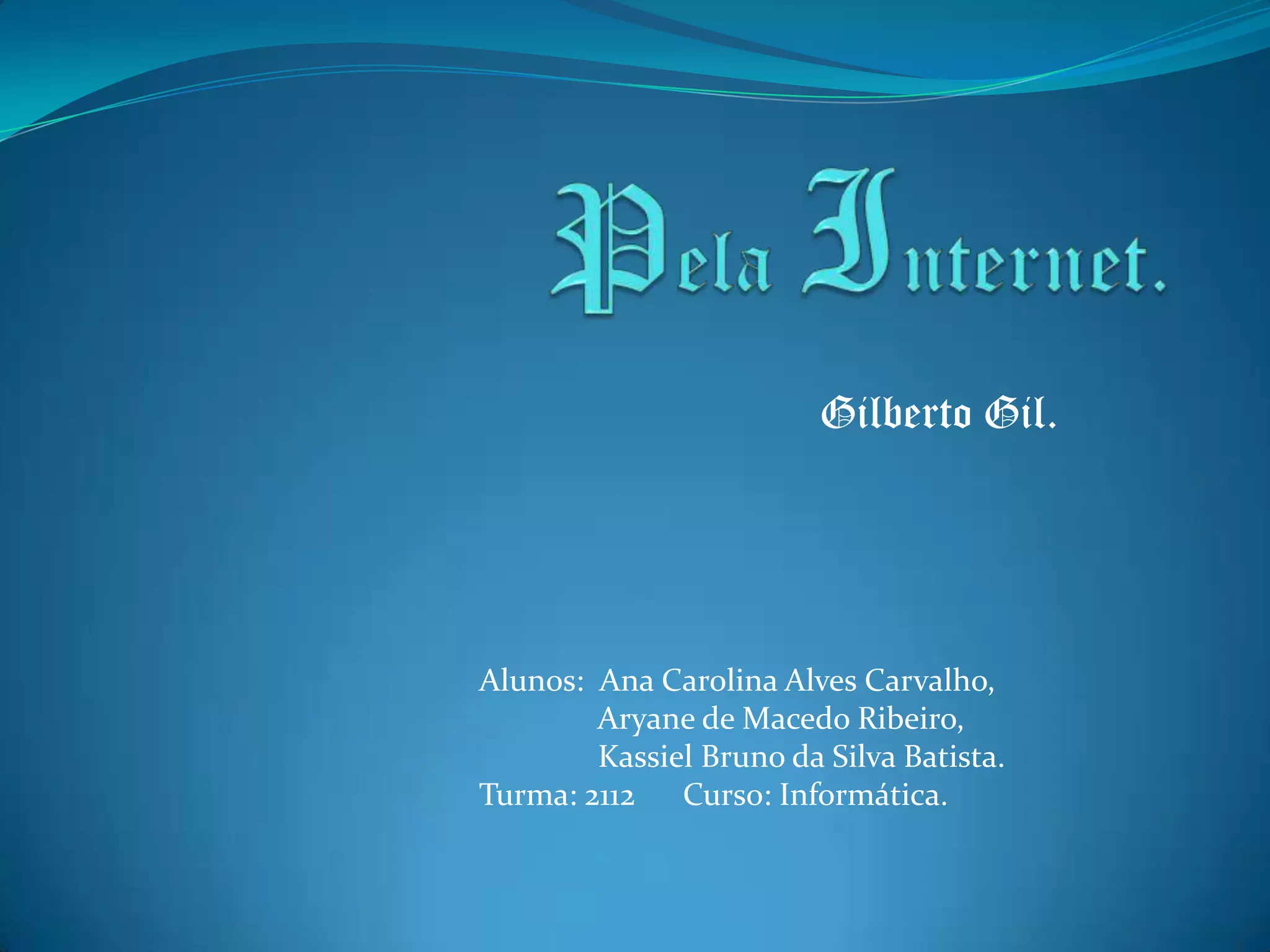 Pela Internet. Gilberto Gil.Alunos: Ana Carolina Alves Carvalho,Aryane de Macedo Ribeiro,Kassiel Bruno da Silva Batista.Turma: 2112 Curso: Informática.