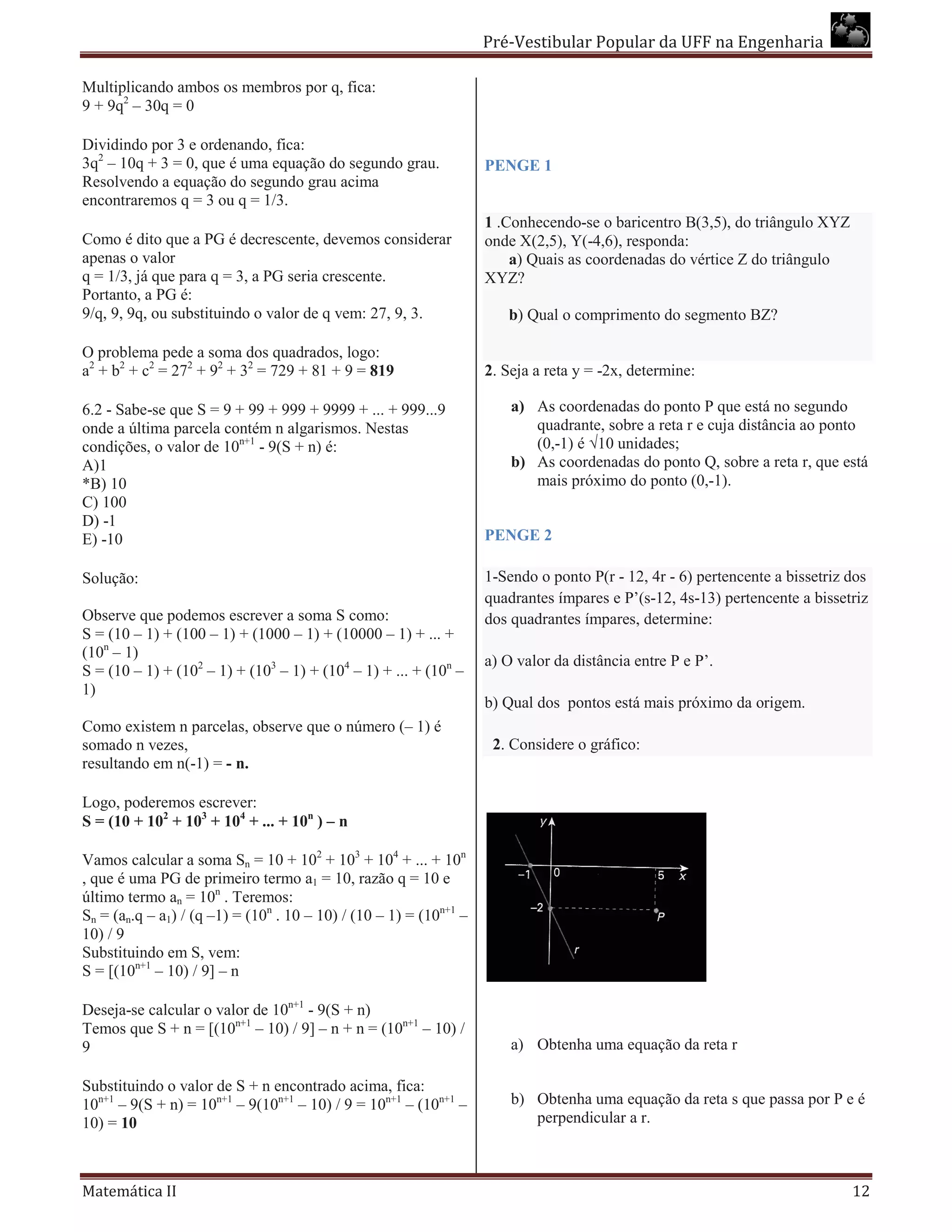 2) São propostos problemas para determinar coordenadas de pontos, comprimentos de segmentos, equações de retas e circunferências, e pertencimento de pontos a curvas.