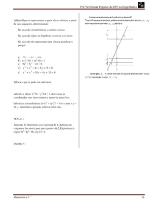 3) São solicitados cálculos e identificações envolvendo elipses, hipérboles e circunferências.