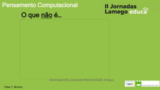 O documento aborda o conceito de pensamento computacional, definindo-o como um tipo de raciocínio lógico que permite resolver problemas usando princípios da ciência da computação. Destaca sua aplicação em diversas áreas e enfatiza a importância de habilidades como decomposição, abstração e reconhecimento de padrões. Além disso, sugere métodos para potencializar o pensamento computacional por meio de recursos tecnológicos e didáticos diversificados.