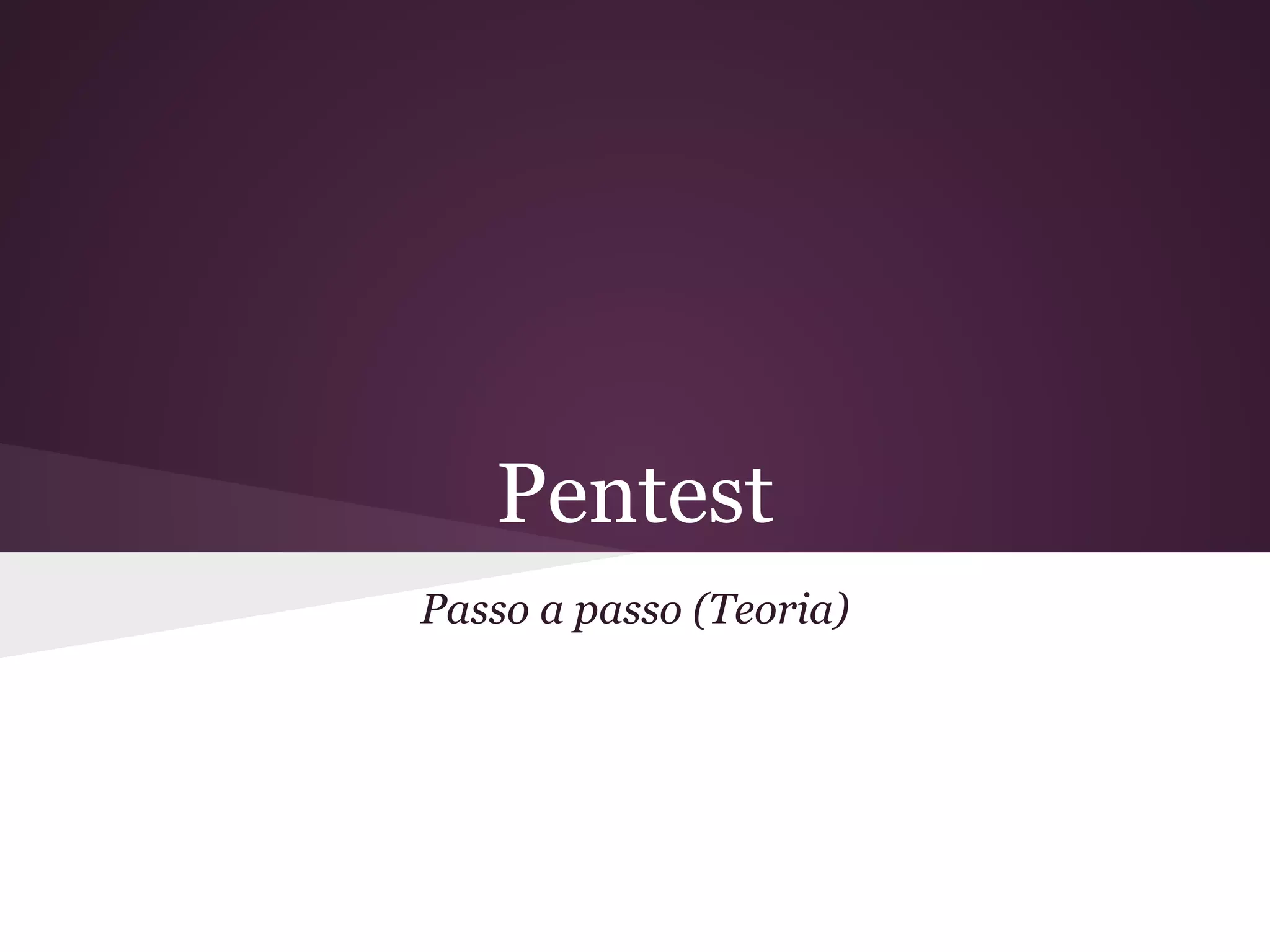 O documento descreve as etapas de um teste de penetração (pentest), incluindo a coleta de informações sobre o alvo, mapeamento da rede, enumeração de serviços, busca por vulnerabilidades, exploração delas, implantação de backdoors e remoção de vestígios. Também fornece dicas para prevenção, como uso de firewalls e desabilitação de serviços desnecessários.