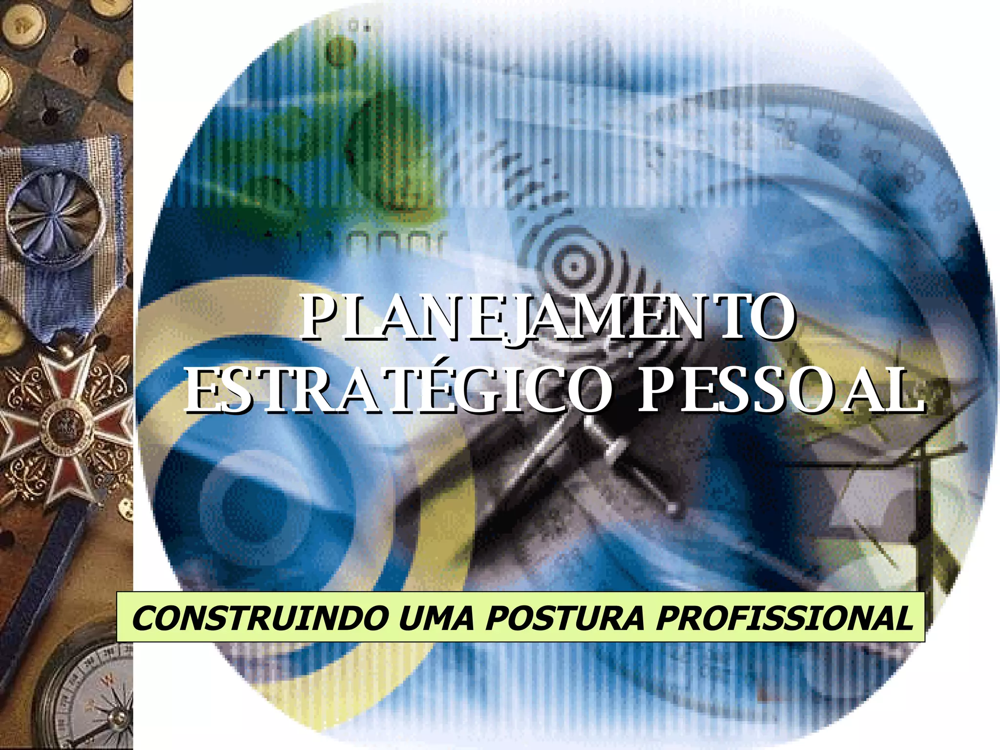 O documento discute os conceitos e etapas do planejamento estratégico pessoal, incluindo visão, missão, ambiente, metas, objetivos, estratégias, implementação e feedback. O planejamento estratégico é apresentado como um processo para definir sonhos e objetivos de carreira e elaborar um plano de ação para alcançá-los.