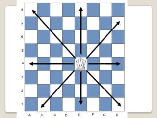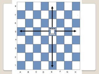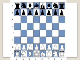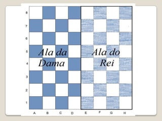 O documento discute a história, benefícios e regras básicas do xadrez. Ele explica que o xadrez é um jogo de tabuleiro popular em todo o mundo que desenvolve habilidades como raciocínio lógico e concentração. O documento também descreve as peças do xadrez, incluindo como cada uma se move e a posição inicial no tabuleiro.