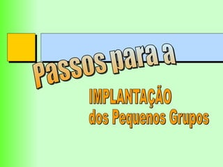 O documento aborda o preparo dos pastores, líderes e da igreja para a formação de pequenos grupos, destacando a importância de conhecimento e apoio na implementação do plano. Sugere treinamento para líderes, orientações sobre funcionamento dos grupos e estratégias de evangelismo. Além disso, ressalta a necessidade de comprometimento dos membros e uma agenda de oração para o crescimento e multiplicação dos grupos.