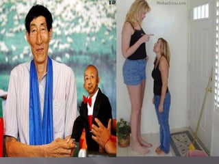 O documento lista vários termos relacionados a altura, tamanho e preço. Inclui informações sobre a mulher mais alta do mundo, a mulher mais baixa do mundo, um homem chinês baixo e carros como o One-77 e o Tata Nano, além dos domínios mais valiosos da internet como sex.com e diamond.com.
