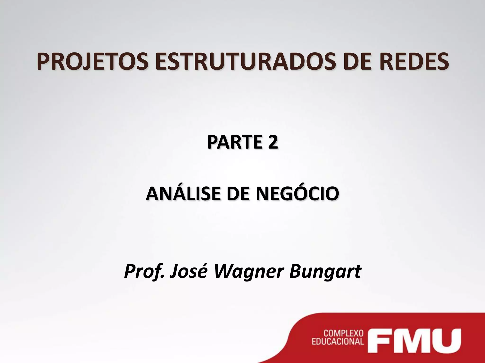 O documento discute a análise de negócios para projetos de rede estruturados, cobrindo: 1) conceitos gerais como entender a empresa e seus objetivos; 2) características da empresa como estrutura e planos; 3) objetivos do projeto de rede; 4) restrições de negócio como políticas, orçamento e cronograma.