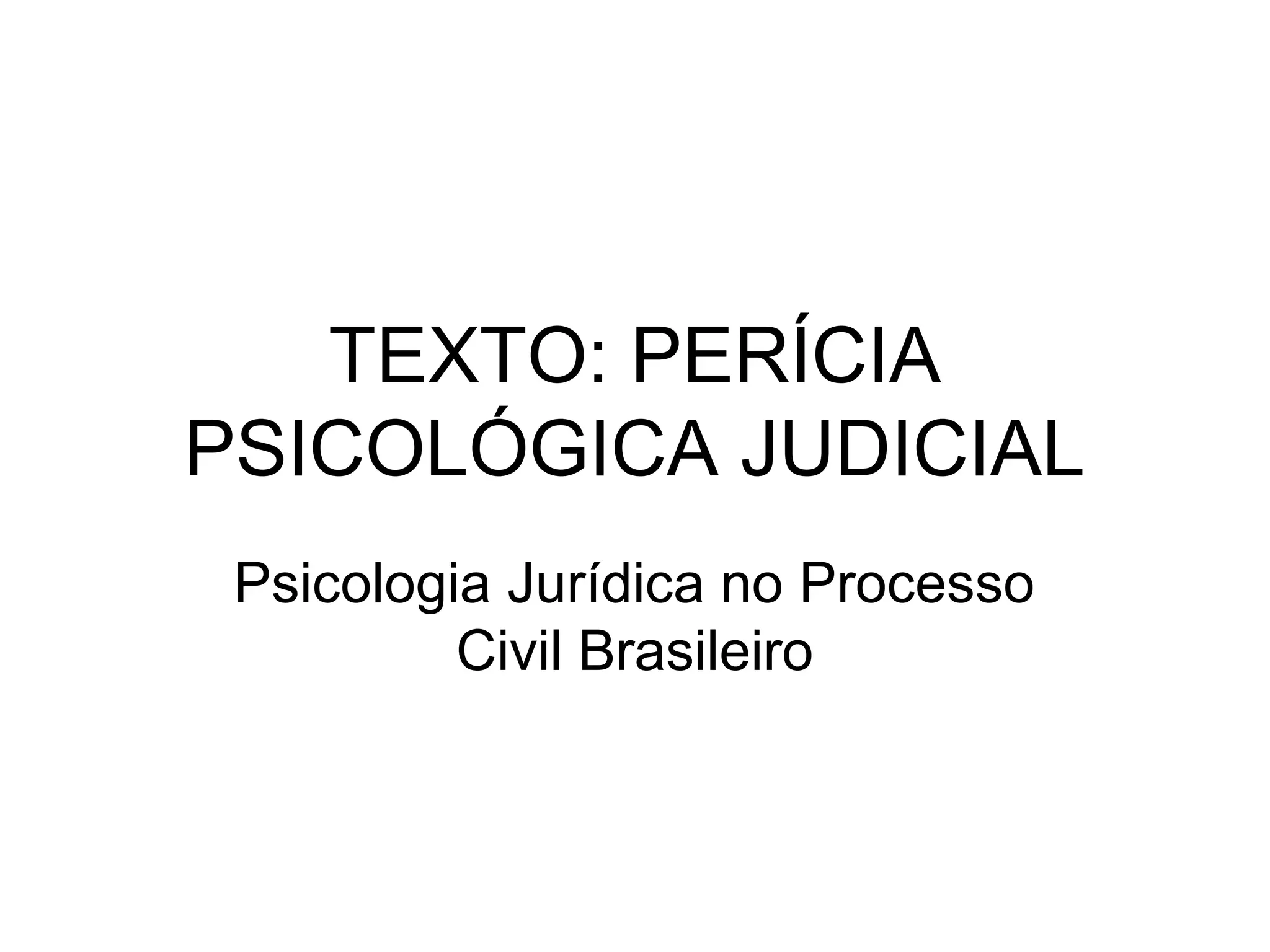 1) O documento discute o conceito e objetivos da perícia psicológica judicial no processo civil brasileiro.