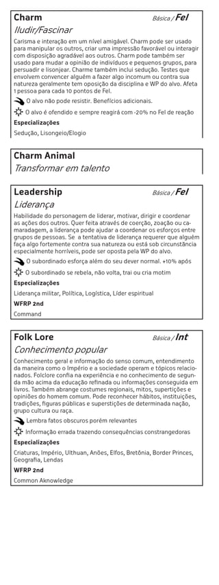 Carisma e interação em um nível amigável. Charm pode ser usado