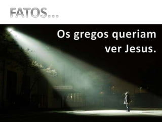 Este documento descreve alguns gregos que desejavam conhecer Jesus durante uma festa religiosa. Eles pediram a Filipe e André para apresentá-los a Jesus. Jesus respondeu que havia chegado a hora de sua glória, mas para alcançar muitos, Ele precisaria morrer, assim como um grão de trigo precisa morrer para germinar e produzir muito fruto.