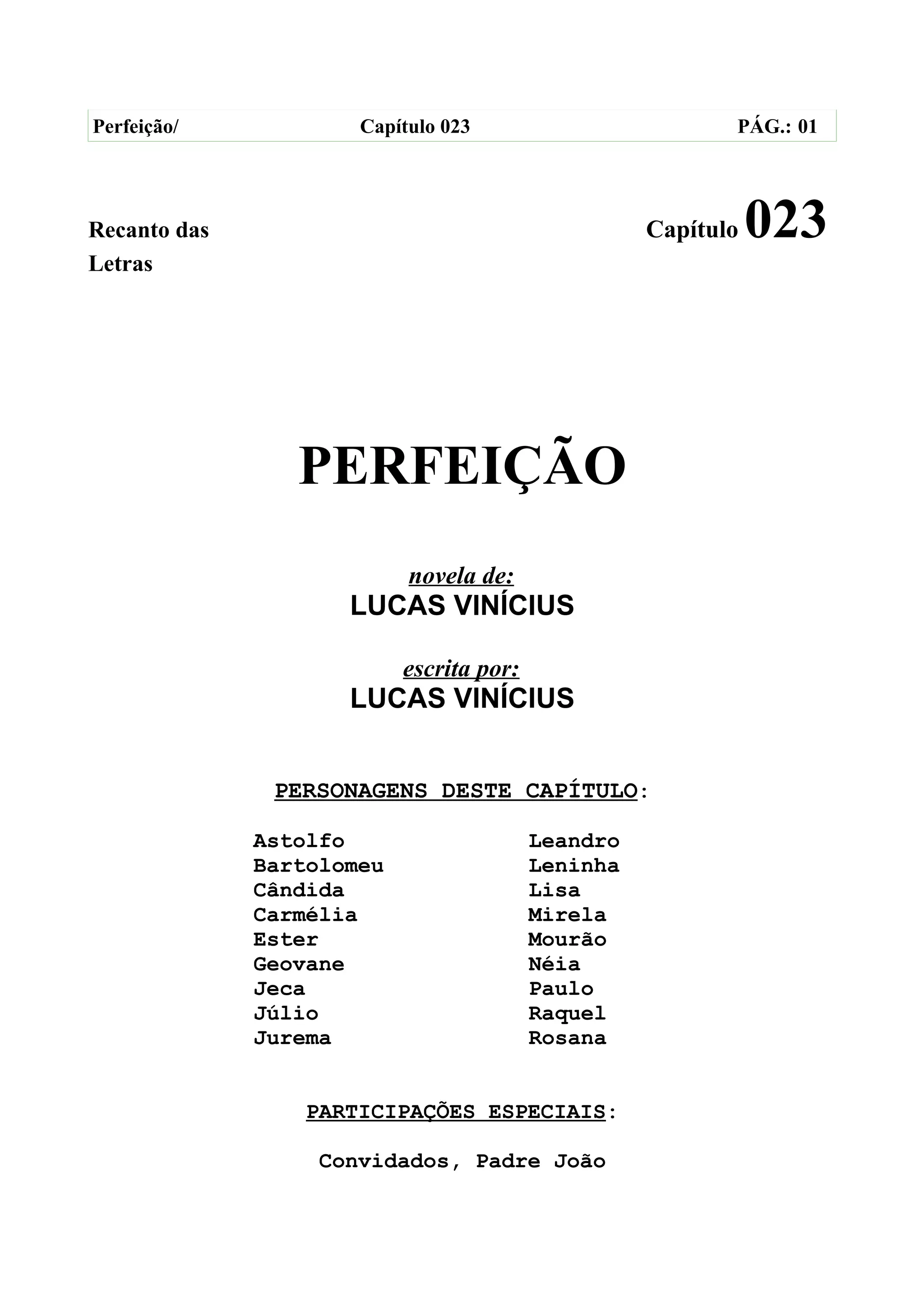 Este capítulo continua mostrando os preparativos para o casamento de Leandro e Ester na igreja. A noiva Ester chega atrasada para a cerimônia, causando ansiedade em Leandro. Lisa, ex-namorada de Leandro, também comparece ao casamento, o que deixa Leandro emocionado. Enquanto isso, os convidados brincam e interagem na igreja, à espera do início da cerimônia.