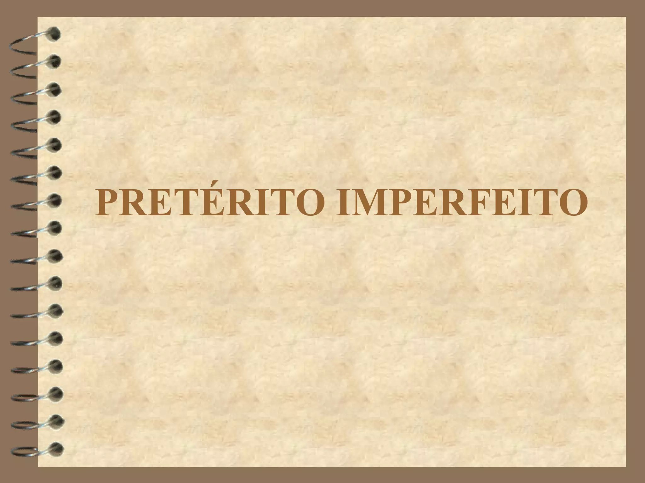 O documento discute os tempos verbais Pretérito Imperfeito e Pretérito Perfeito no passado. O Pretérito Imperfeito descreve ações repetidas ou contínuas no passado sem tempo definido ou ações para descrever situações no passado. O documento também lista algumas expressões comuns usadas com o Pretérito Imperfeito.