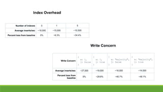 O documento resume os principais pontos sobre performance no MongoDB, incluindo: