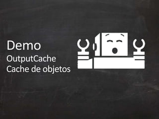 O documento discute várias técnicas e estratégias para melhorar o desempenho de aplicações ASP.NET MVC, incluindo: 1) otimizar requisições HTTP reduzindo chamadas e downloads; 2) usar cache efetivamente para evitar processamento desnecessário; 3) minificar e combinar arquivos CSS e JavaScript para reduzir tamanho;
