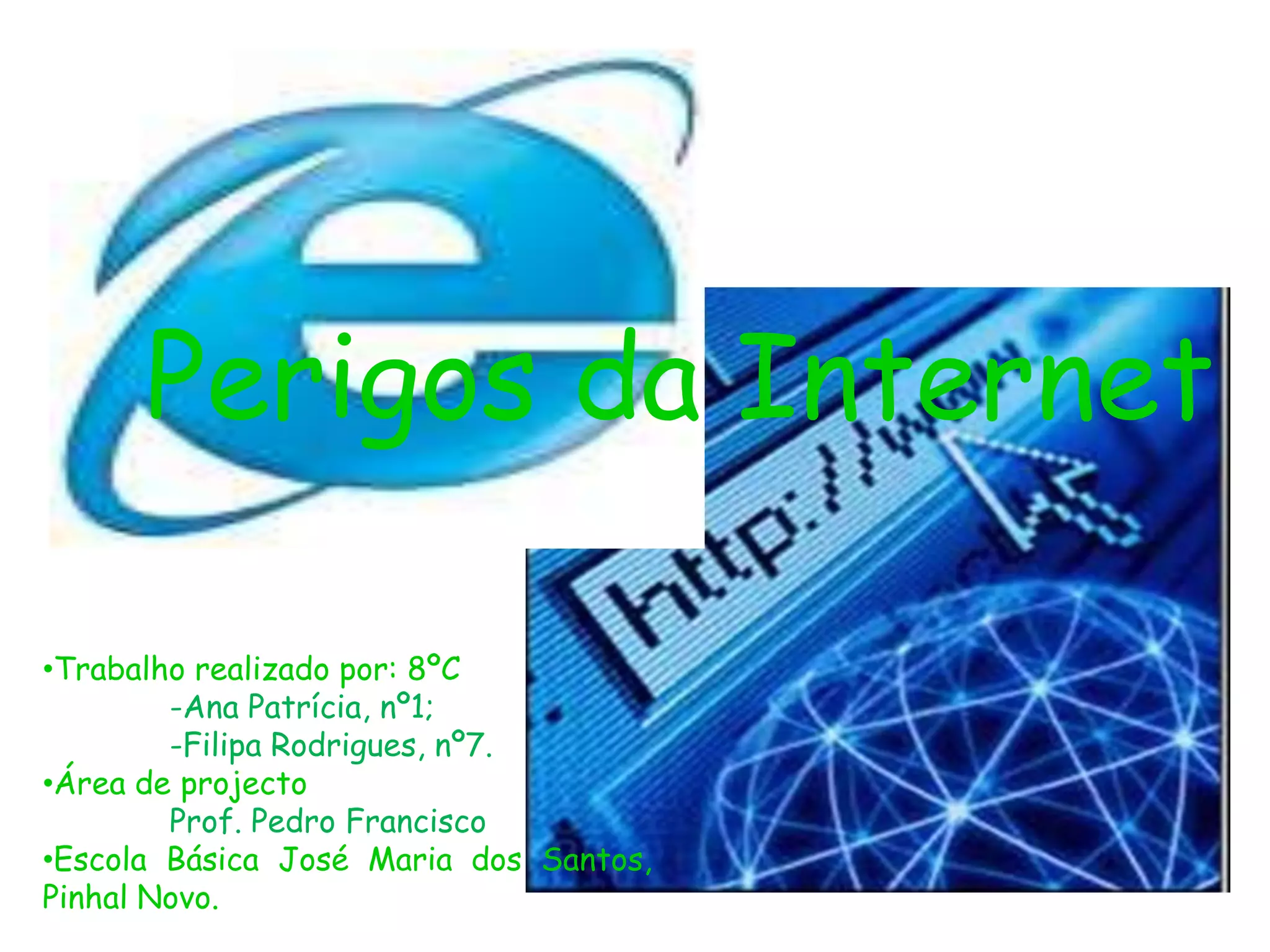 O documento discute os perigos da internet, incluindo acesso a conteúdo impróprio, comunicação com estranhos e riscos de vírus. Ele fornece conselhos sobre como se manter seguro online, como não divulgar informações pessoais, manter softwares atualizados e usar firewalls.